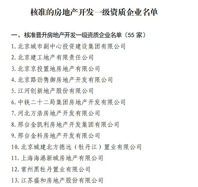 房地產(chǎn)開發(fā)資質(zhì)分為兩個級別,國家一級資質(zhì)是最高級別,對企業(yè)的整體規(guī)模、開發(fā)業(yè)績、施工質(zhì)量、人員配備、從業(yè)年限等均有要求,獲批難度較大。本次全省僅3家企業(yè)核準晉升房地產(chǎn)開發(fā)一級資質(zhì)。